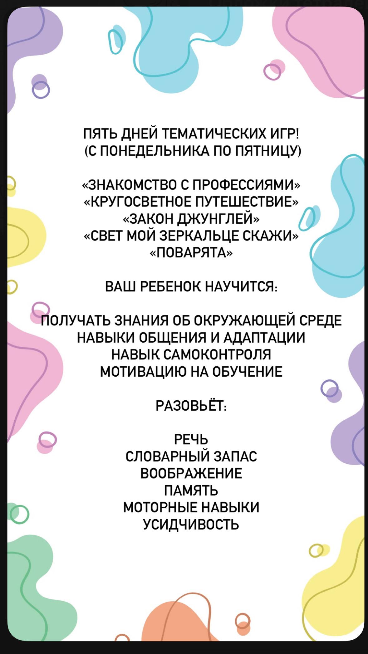 * дополнительно можно будет оставлять ребёнка на 1-2 ч., стоимость дополнительного часа 1 700 р./час.