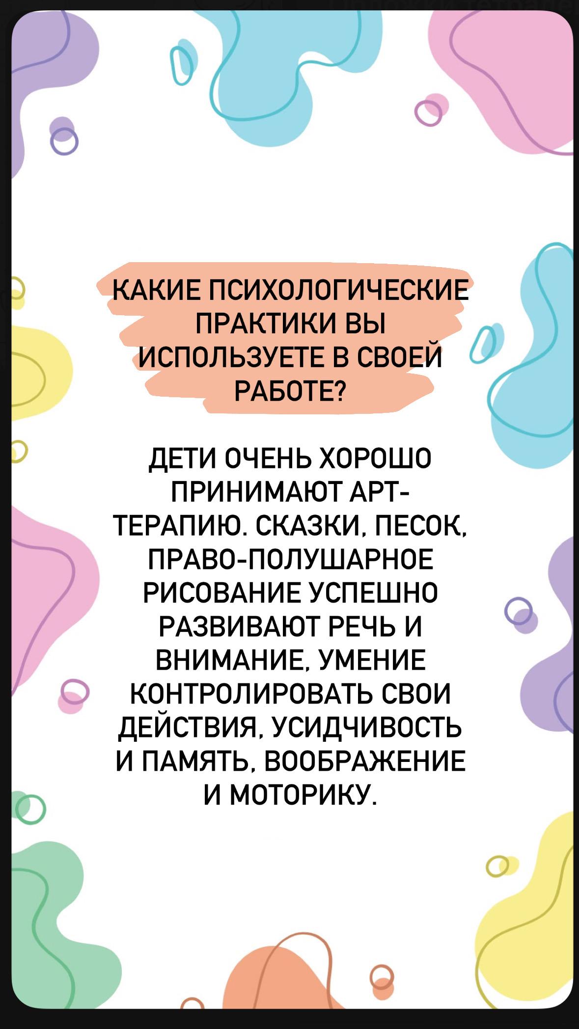 Дети очень хорошо принимают арт-терапию. Сказки, песок, право-полушарное рисование успешно развивают речь и внимание, умение контролировать свои действия, усидчивость и память, воображение и моторику.