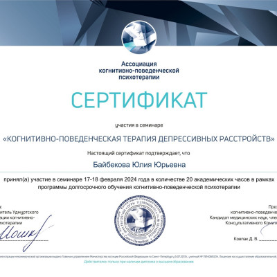 1. Июль 2023 «Основы когнитивно-поведенческой психотерапии: теория и практика»