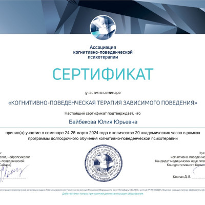 9. Март 2024 «Когнитивно-поведенческая терапия зависимого поведения»