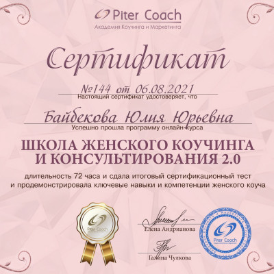 «Школа женского коучинга и консультирования» (Питеркоуч, 2021г. (72 ч)