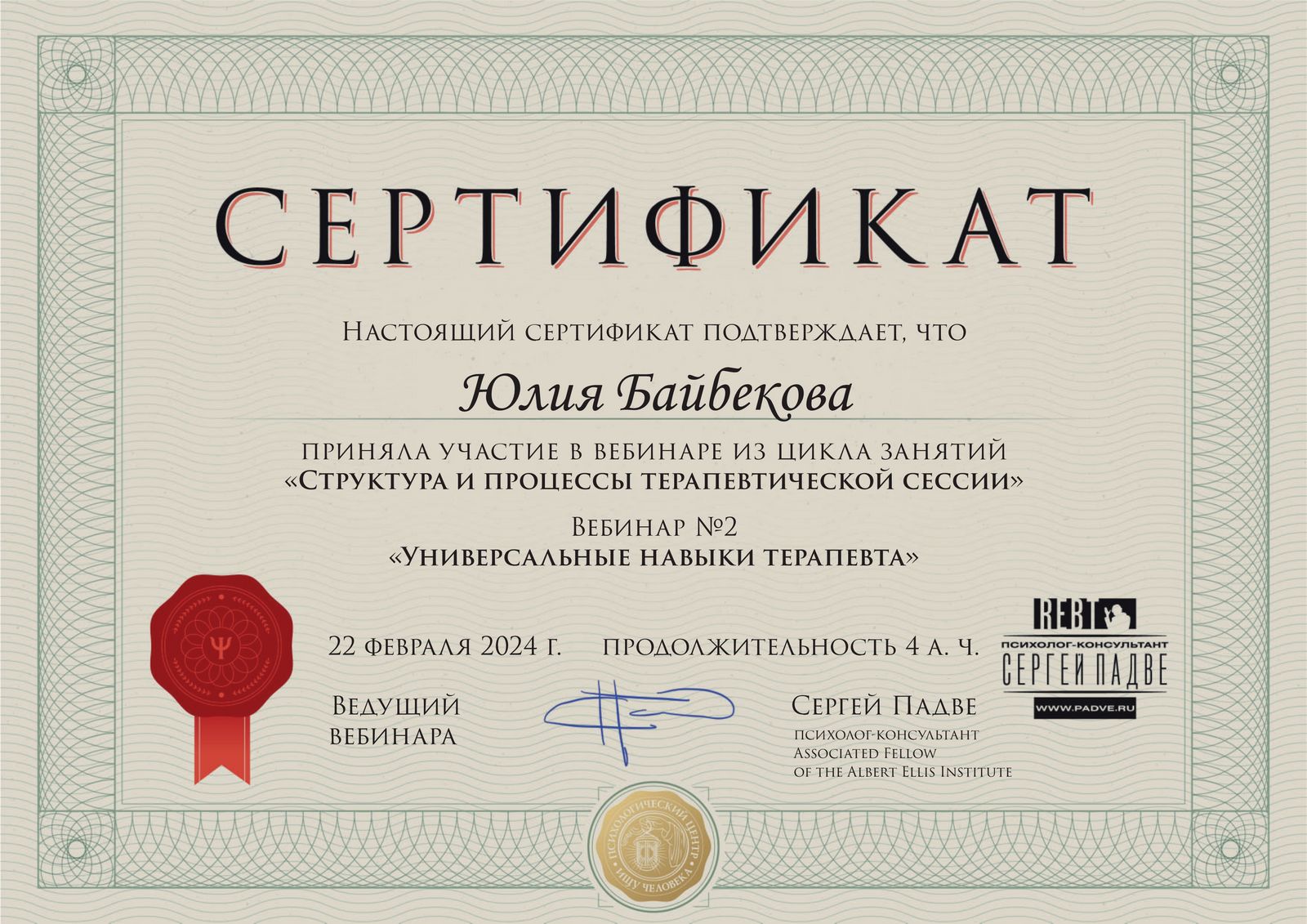 Серия воркшопов "Структура и процессы терапевтической сессии в КПТ" (С. Падве, 2024г):