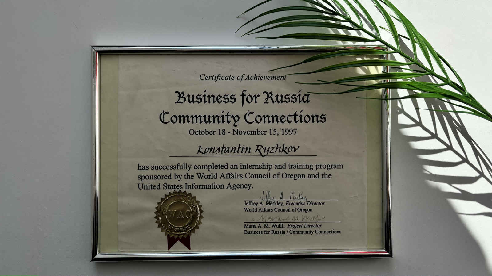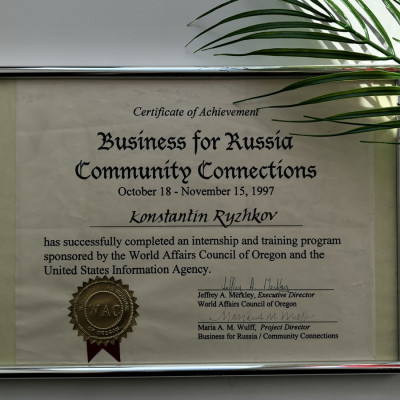 Программа обучения и стажировки по психотерапии. Стипендиат образовательной программы США от World Foreign Affair «Buisness For Russian Community Connection», Олимпия, Вашингтон, США, 1997г.