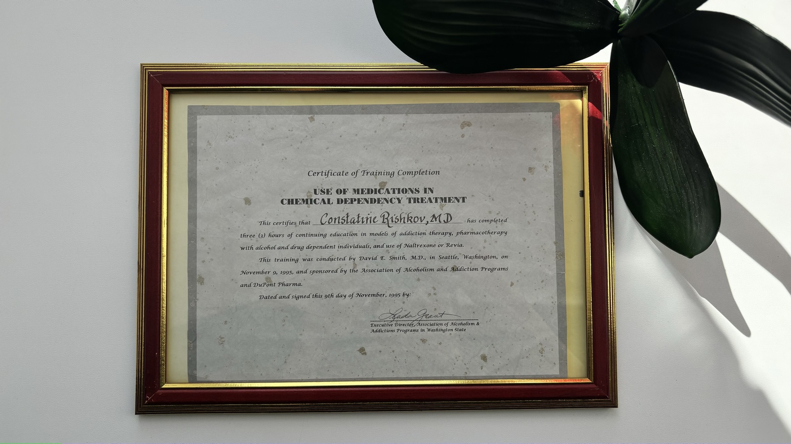 Применение пролонгированных форм налтрексона в терапии зависимостей. В рамках образовательной программы компании Дю Понт и NIDA, Сиэтл, США, 1995г. (Д. Смит).