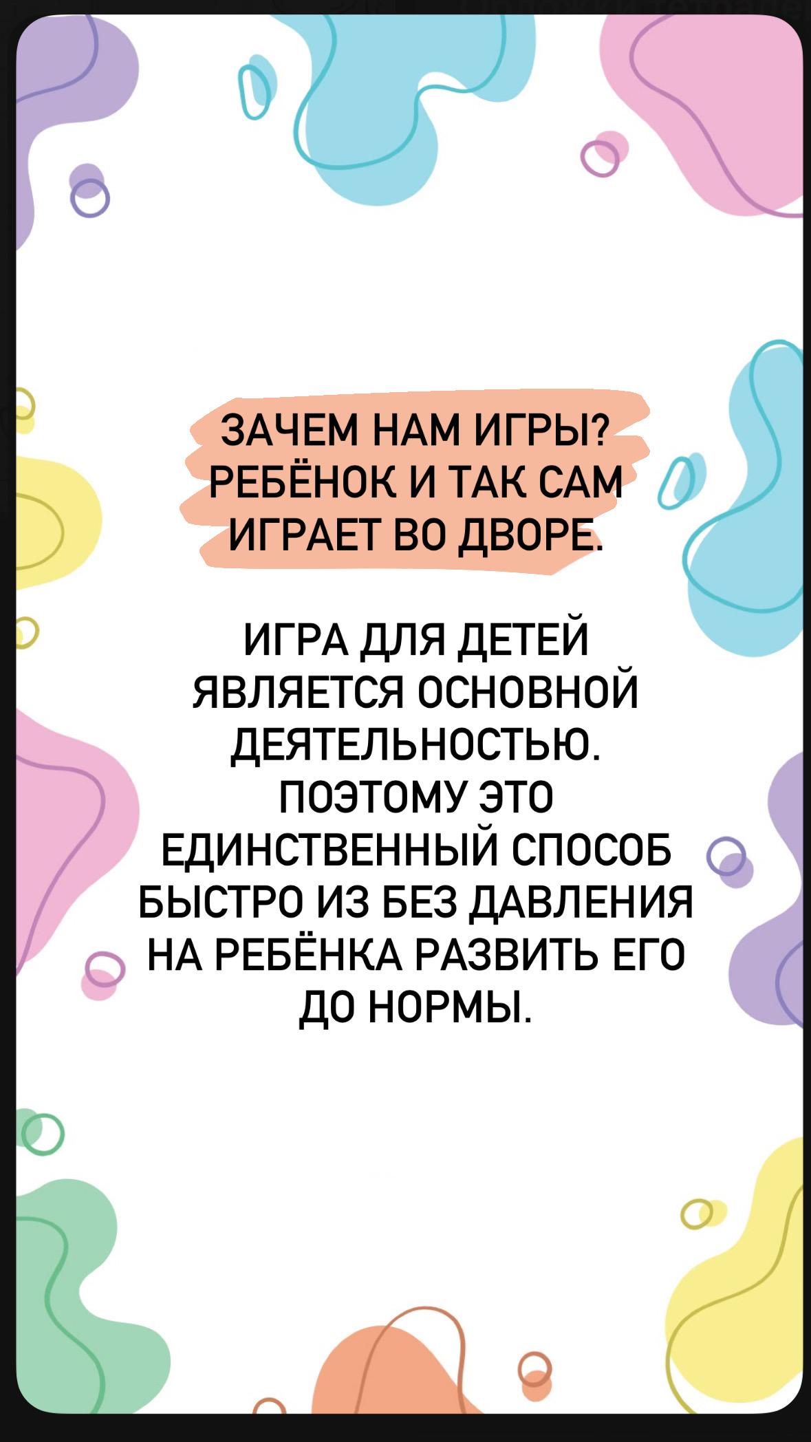 Игра для детей является основной деятельностью. Поэтому это единственный способ быстро из без давления на ребёнка развить его до нормы.