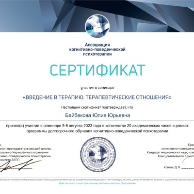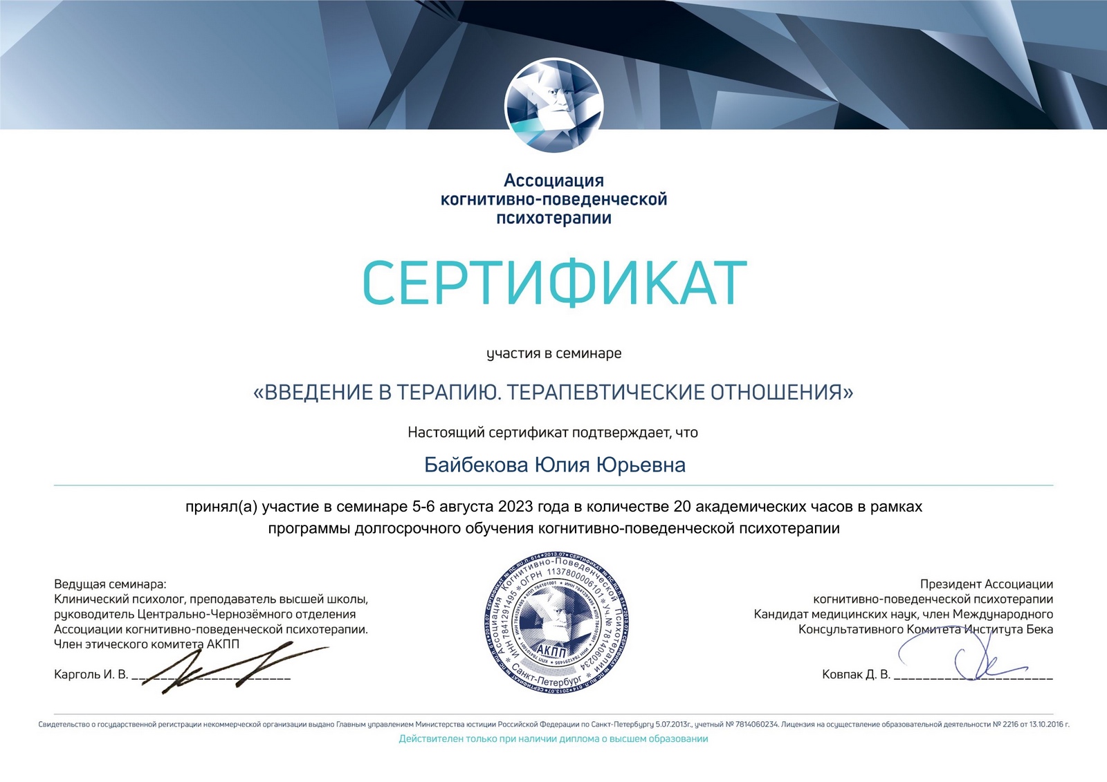 1. Июль 2023 «Основы когнитивно-поведенческой психотерапии: теория и практика»