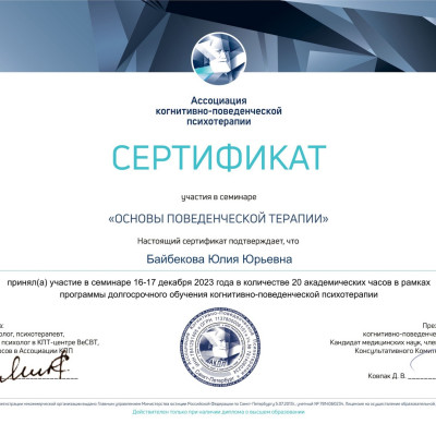 6. Декабрь 2023 «Основы поведенческой терапии»;