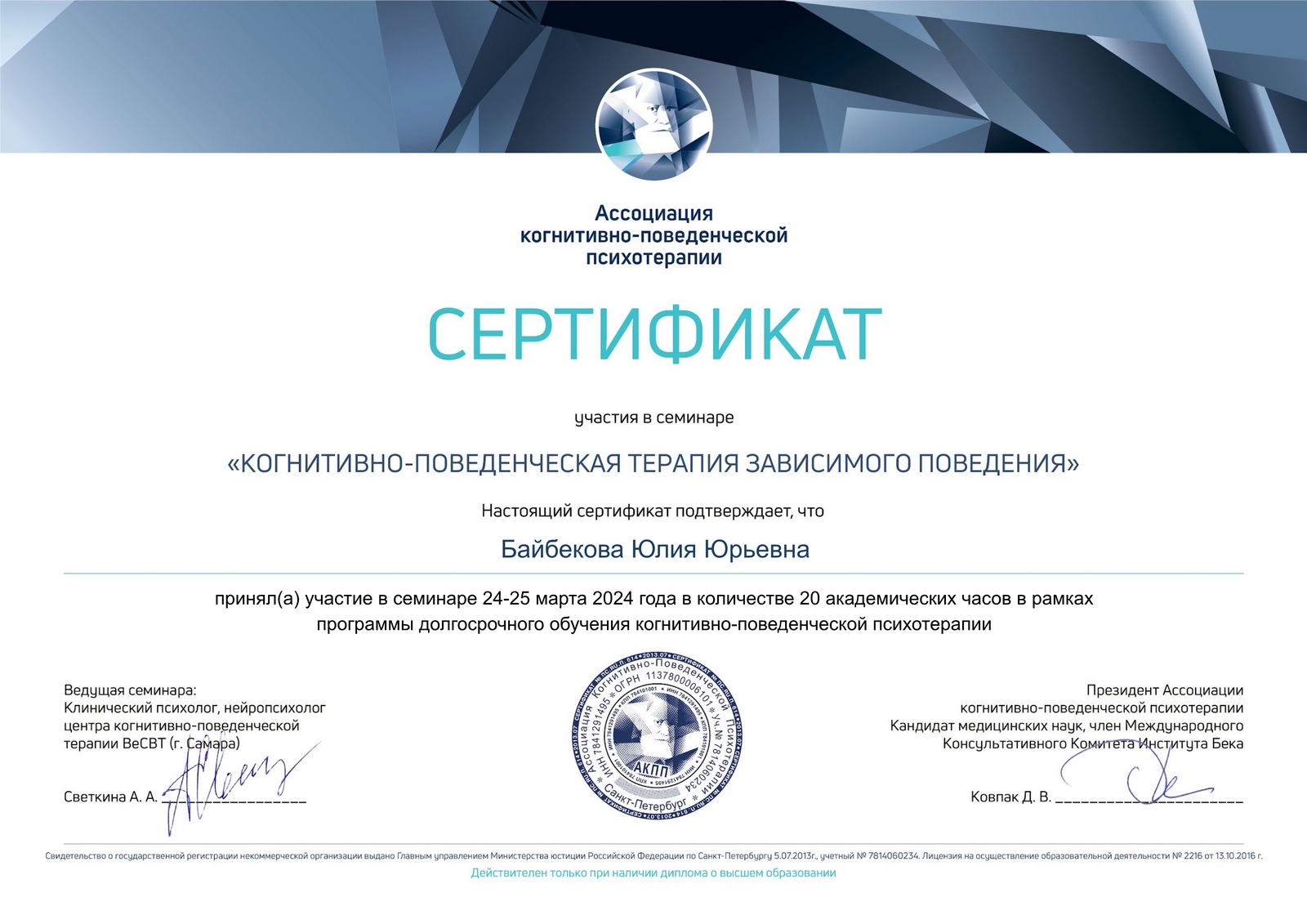 9. Март 2024 «Когнитивно-поведенческая терапия зависимого поведения»