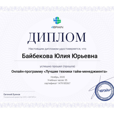 «Лучшие техники тайм-менеджмента» (ООО «4БРЭЙН», 2020г (35ч)