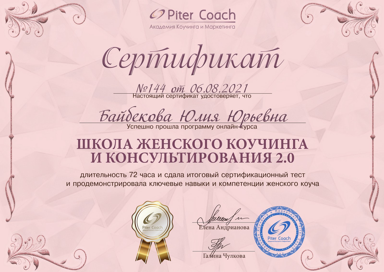 «Школа женского коучинга и консультирования» (Питеркоуч, 2021г. (72 ч)