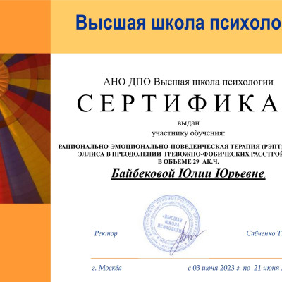 «РЭПТ А. Эллиса в преодолении тревожно-фобических расстройств» (АНО ДПО «Высшая школа» (Е.А. Ромек), 2023г (29ч)
