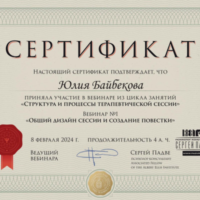 Серия воркшопов "Структура и процессы терапевтической сессии в КПТ" (С. Падве, 2024г):