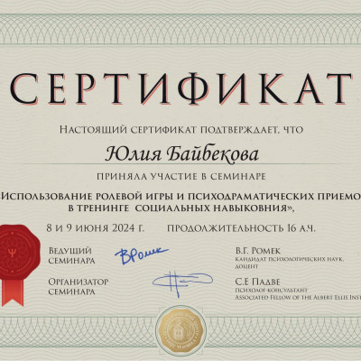 «Использование ролевой игры и психодраматических приемов в тренинге социальных навыков» (Ромек В.Г., Падве С.Е., 2024г)