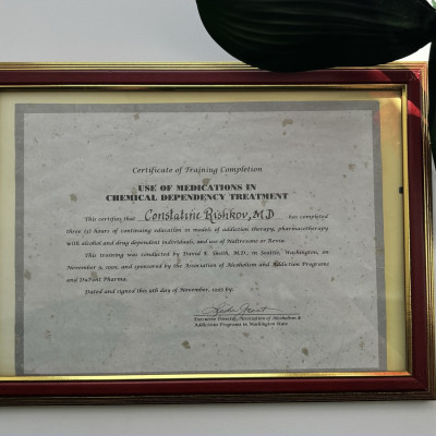 Применение пролонгированных форм налтрексона в терапии зависимостей. В рамках образовательной программы компании Дю Понт и NIDA, Сиэтл, США, 1995г. (Д. Смит).