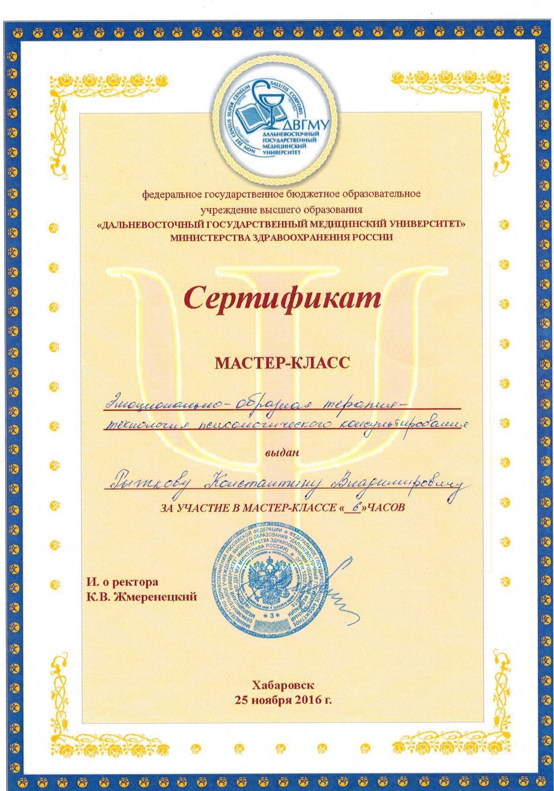 Эмоционально-образная терапия – технология психологического консультирования. ФГБОУ ВО «Дальневосточный государственный медицинский университет», 2016г.
